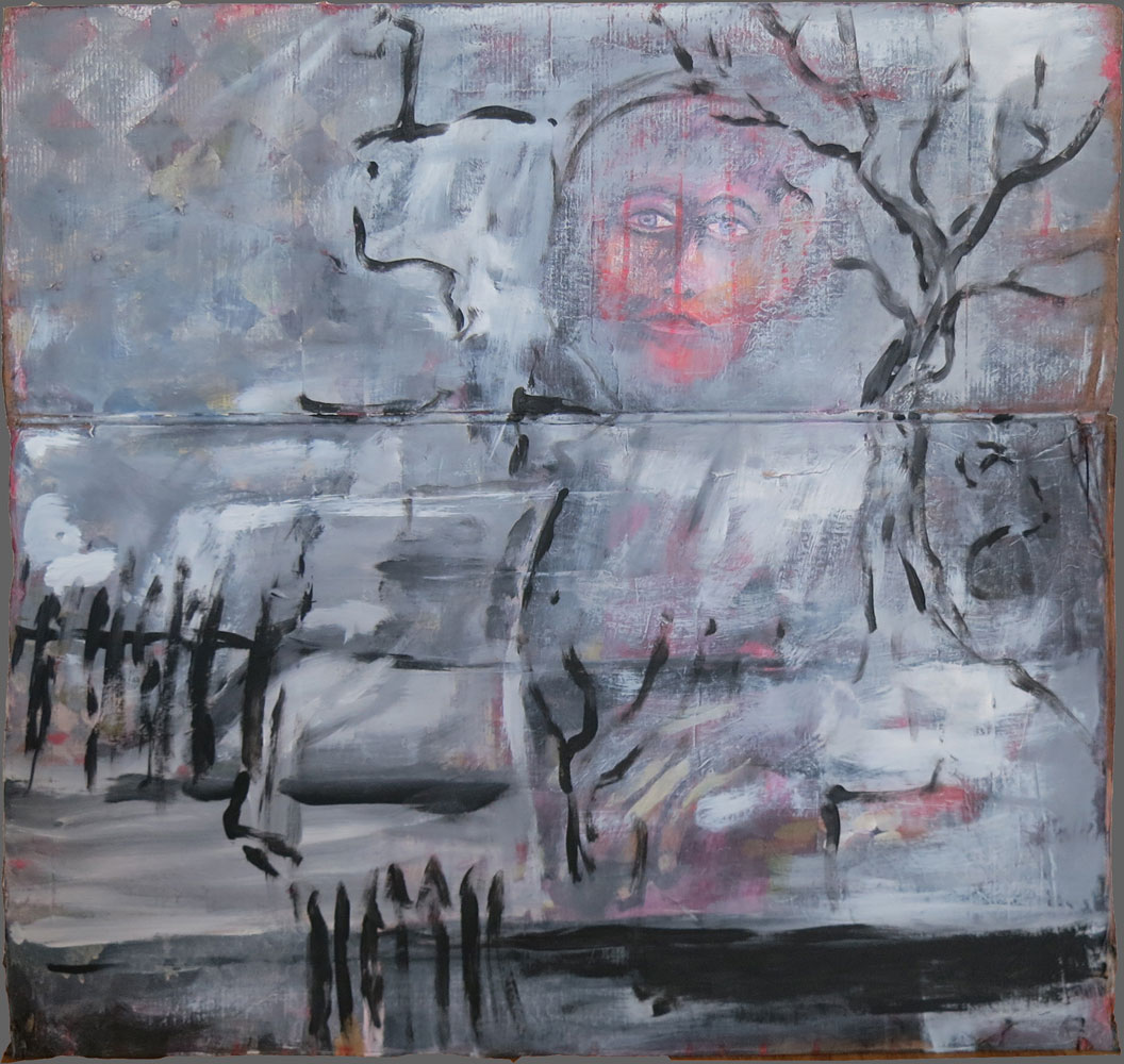 Acryl und Kohle auf Karton, 78 cm x 78 cm, 2020