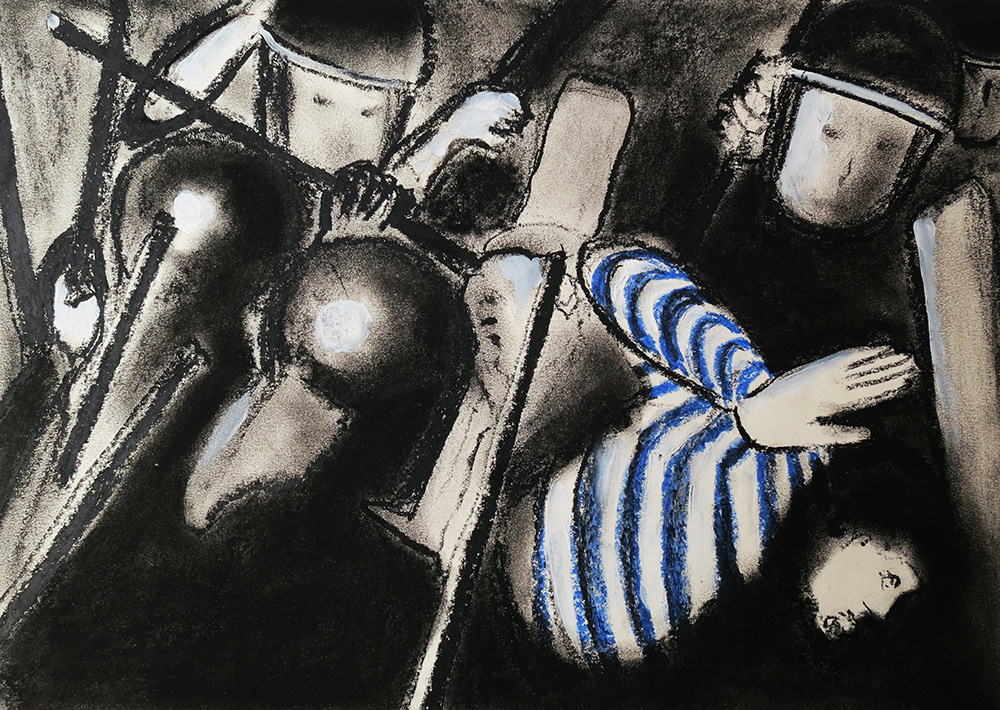 Ölkreide mit Kohle und Acryl auf Papier, 42 x 29 cm, 2011